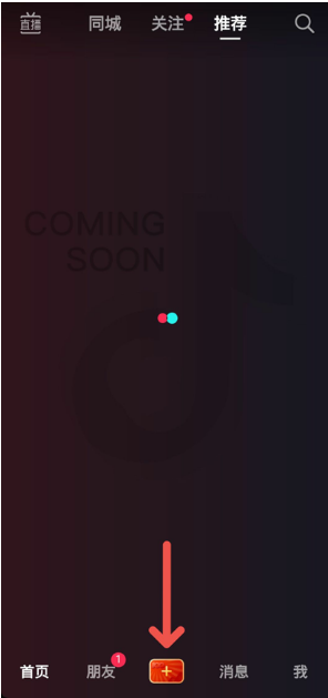 打开抖音之后,可以在首页面的底部看到 "+"这个符号,点击加号进入下一个页面。